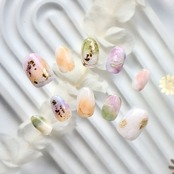ピンク・オレンジ・グリーン・ラベンダーがやさしく混ざり合う天然石風のニュアンスネイルᵕ̈*