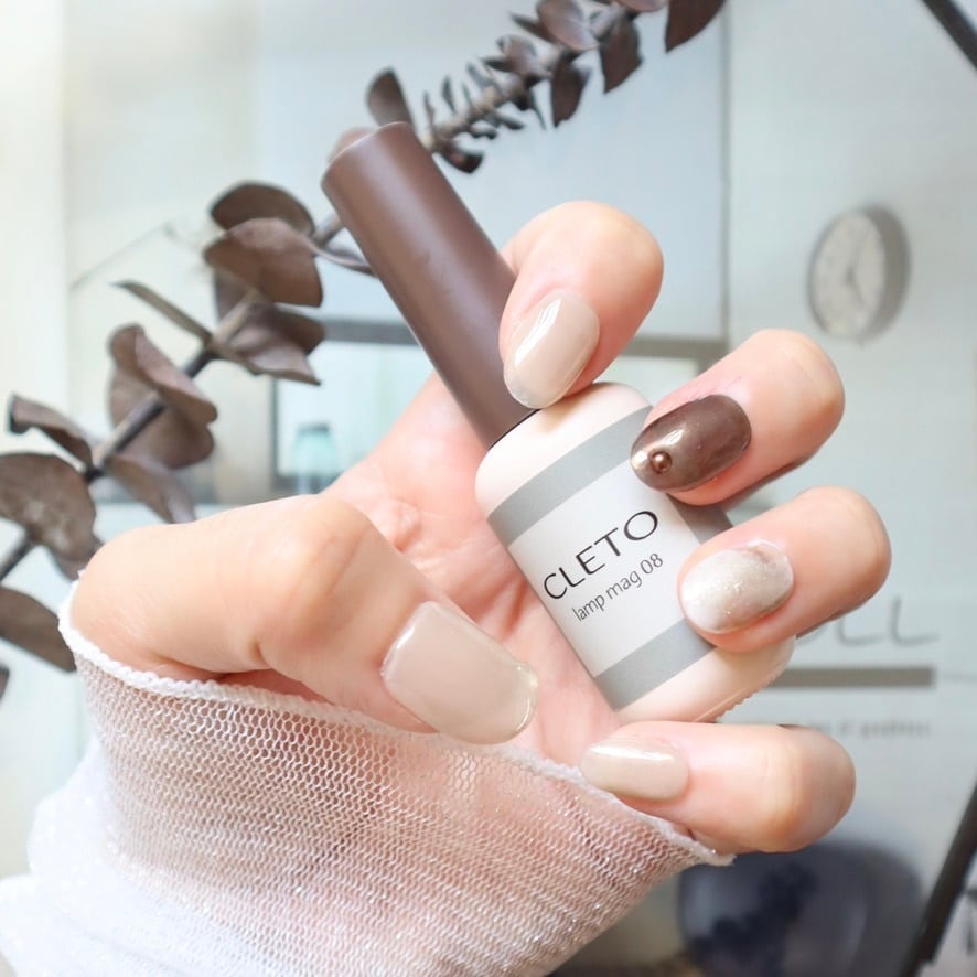 No.341 グレージュマグネット×ブラウンミラーの大人シンプルネイルチップ
